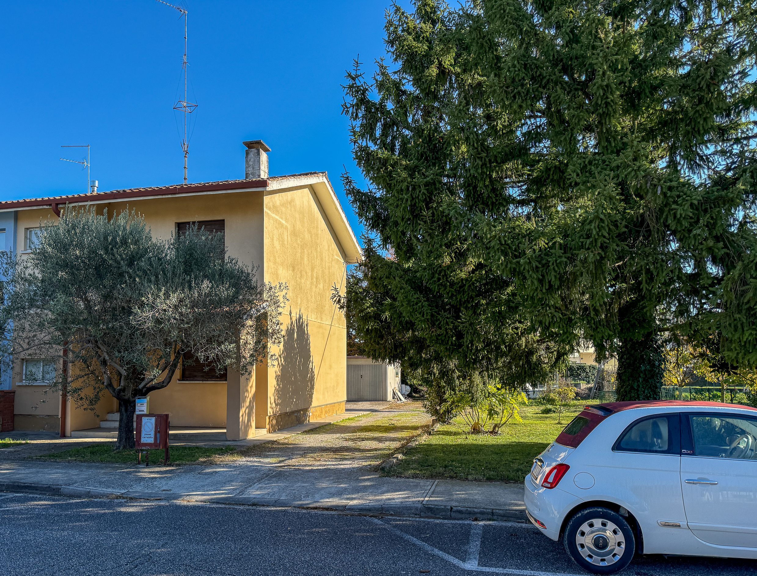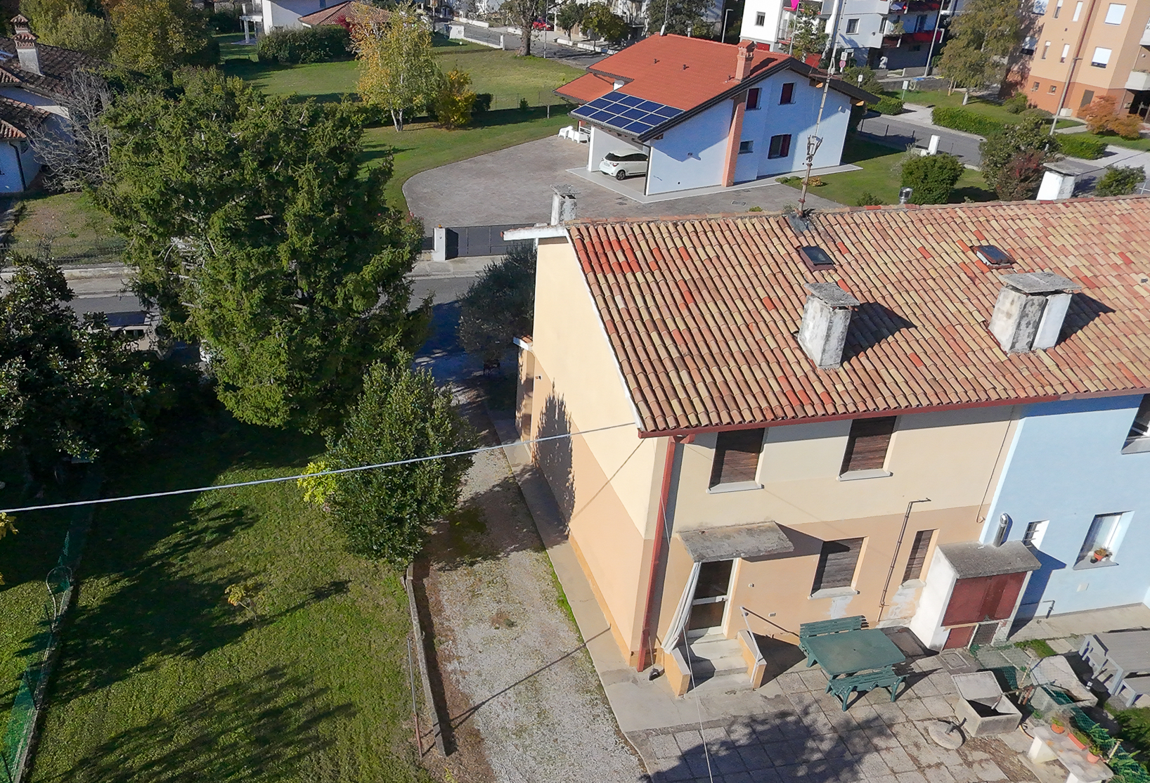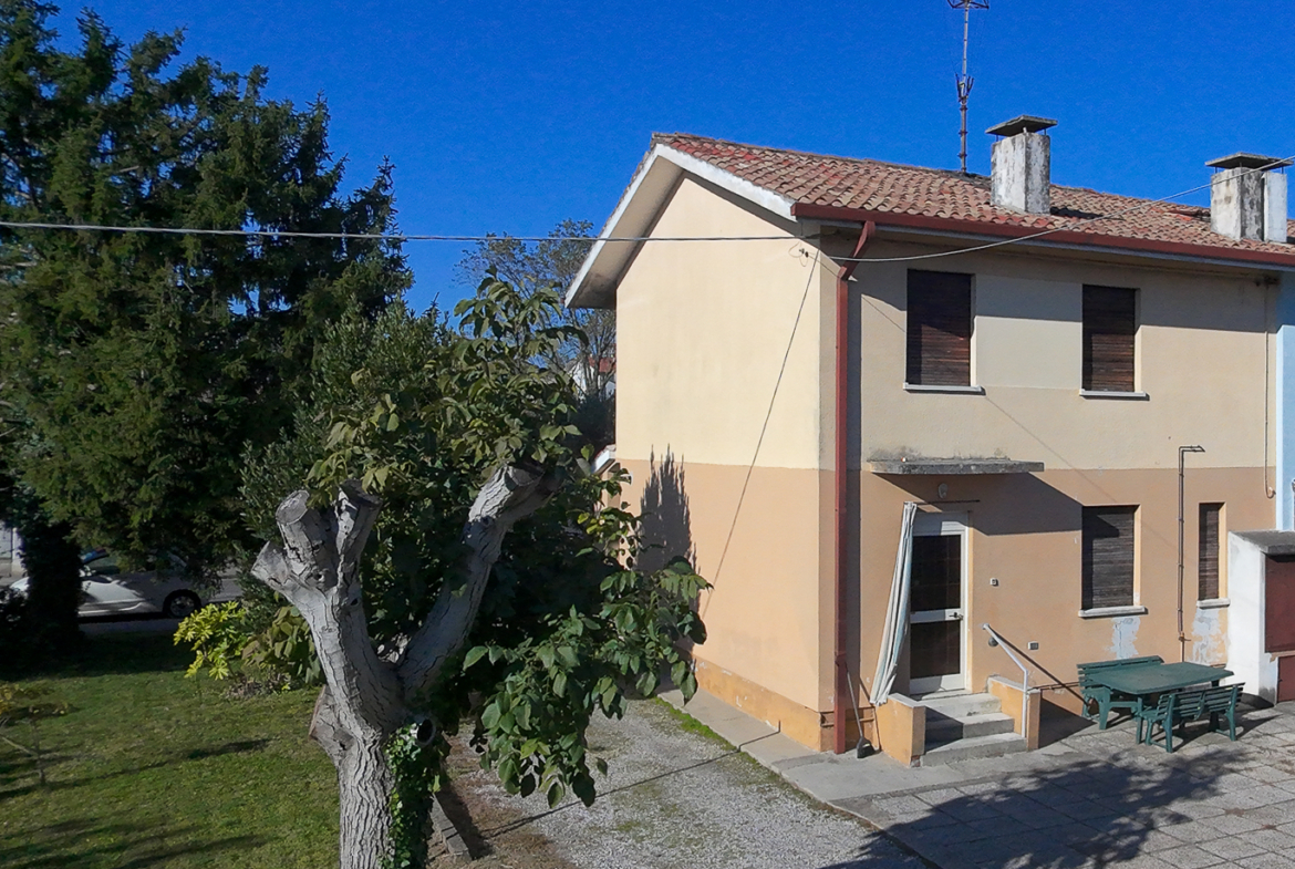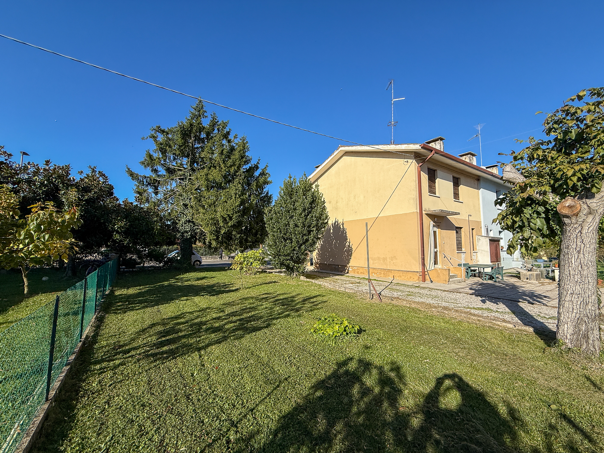 Casa accostata su due livelli e soffitta con ampio giardino e garage doppio. Al piano terra troviamo una cucina abitabile, un soggiorno/salotto, ripostiglio e bagno. L’accesso alla casa è duplice: fronte strada e sul retro. Al piano primo tre camere. Possibilità di ampliamento della struttura abitativa. Un esempio di ampliamento è visibile presso la casa affianco.