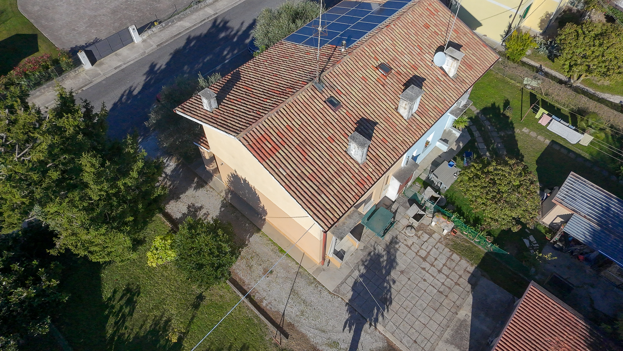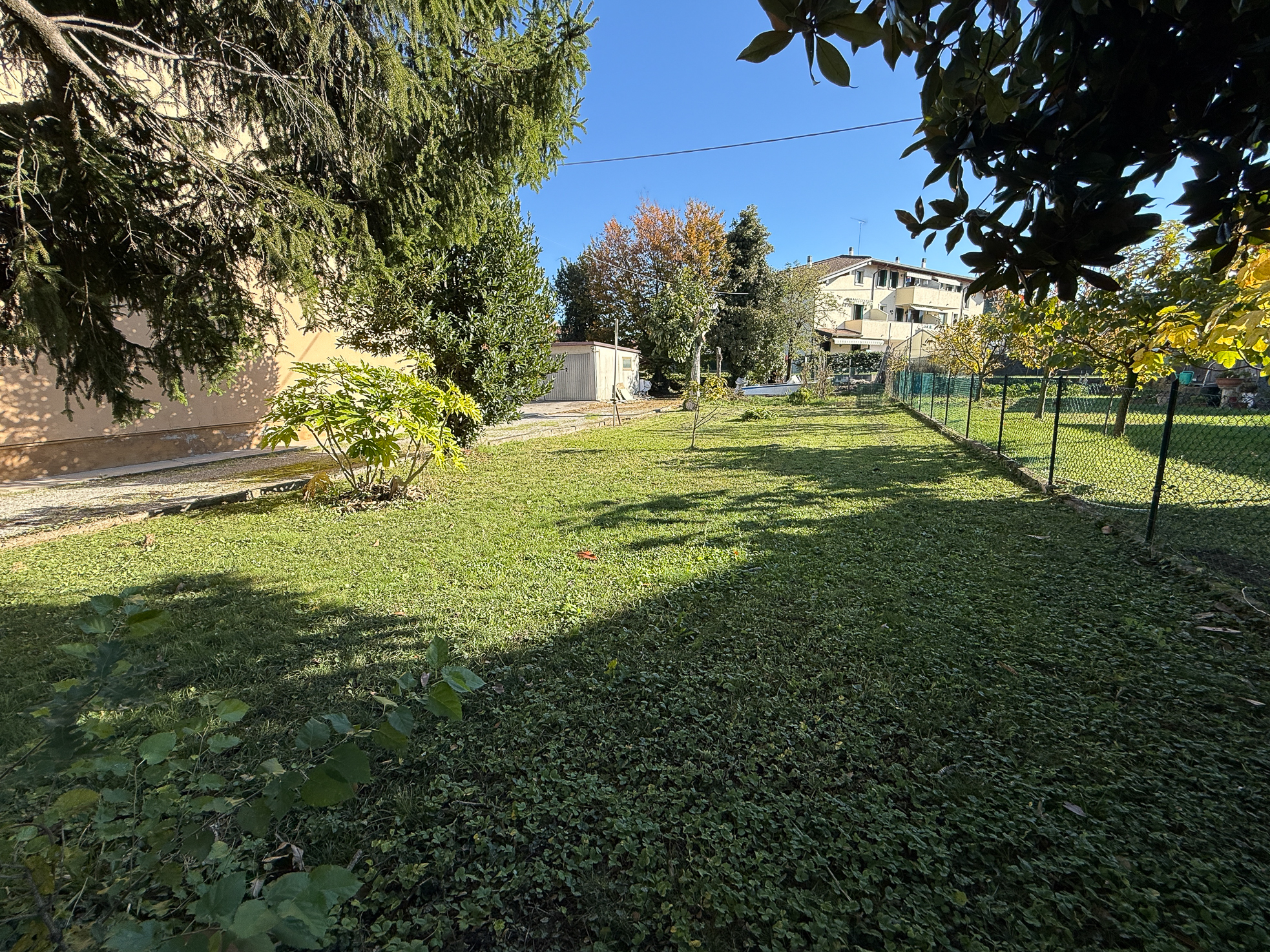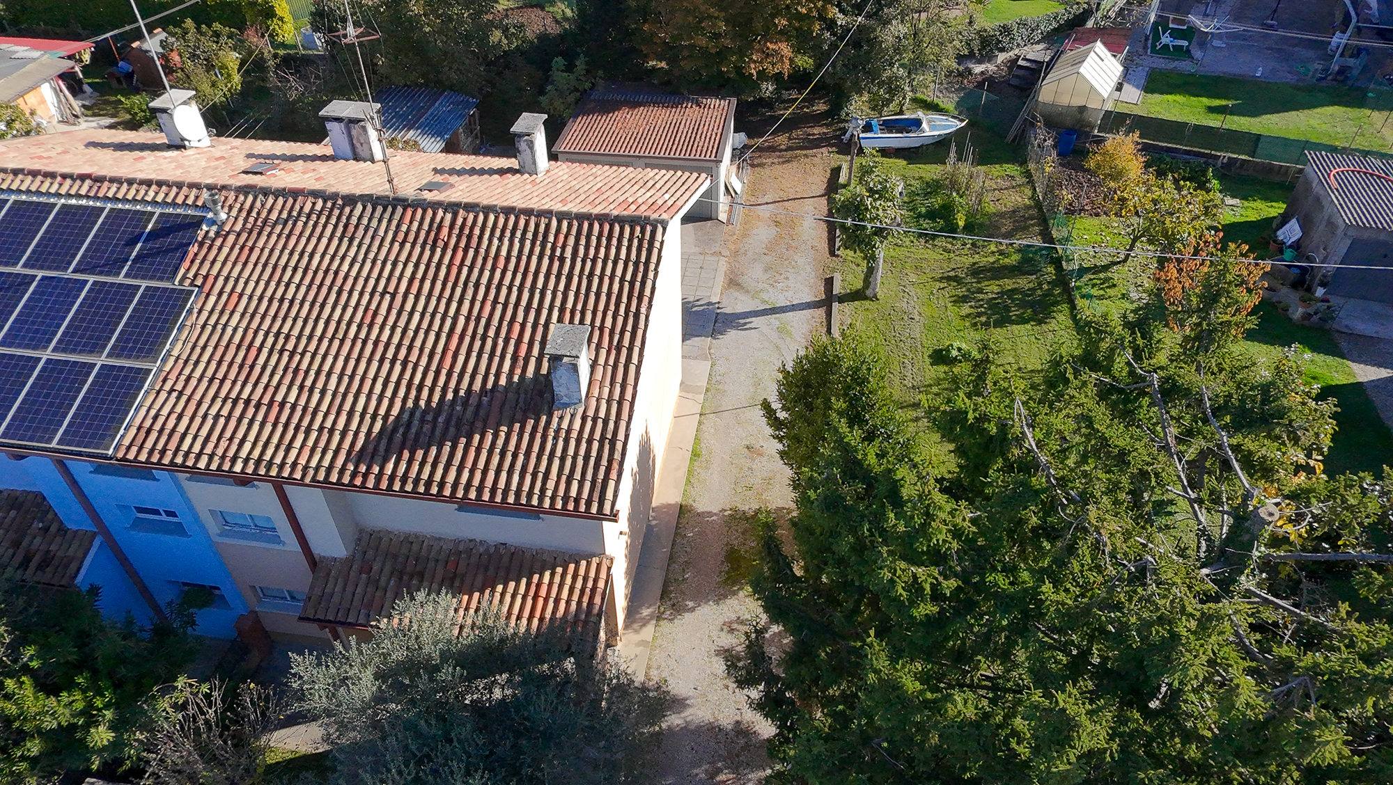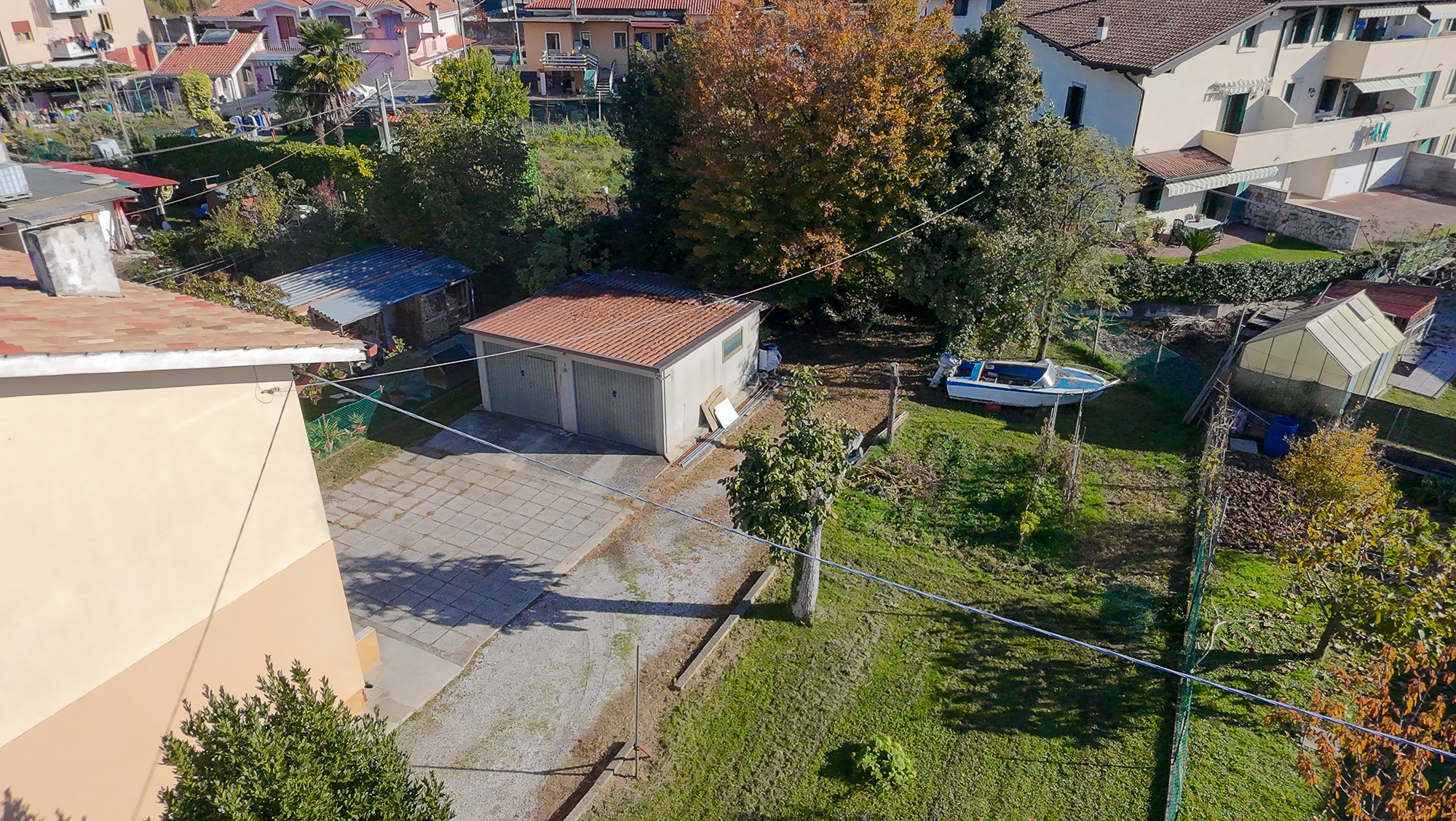 Casa accostata su due livelli e soffitta con ampio giardino e garage doppio. Al piano terra troviamo una cucina abitabile, un soggiorno/salotto, ripostiglio e bagno. L’accesso alla casa è duplice: fronte strada e sul retro. Al piano primo tre camere. Possibilità di ampliamento della struttura abitativa. Un esempio di ampliamento è visibile presso la casa affianco.