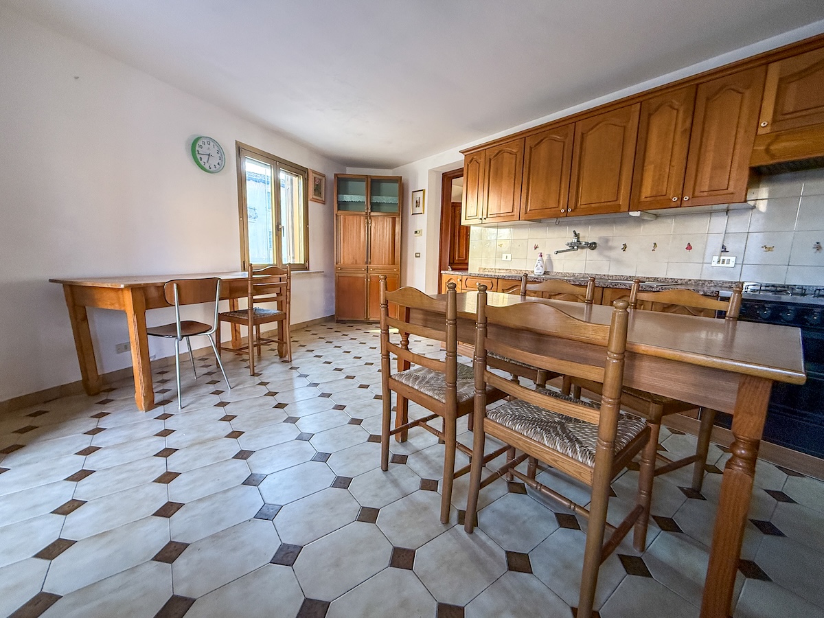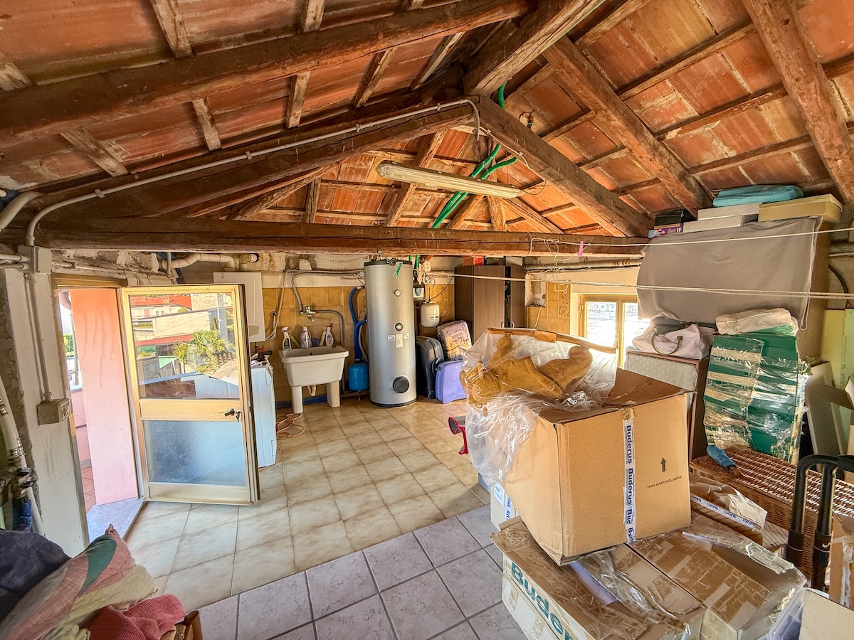 Piano primo: secondo appartamento con ingresso, cucina, camera matrimoniale, due camerette, bagno e grande terrazzo ideale per pranzi all’aperto. Impianto di riscaldamento a pavimento. Dal piano si accede inoltre a una soffitta/mansarda piastrellata al grezzo, perfetta come deposito o spazio hobby.