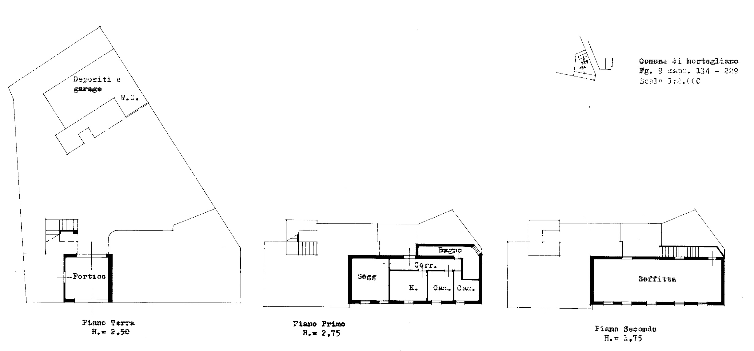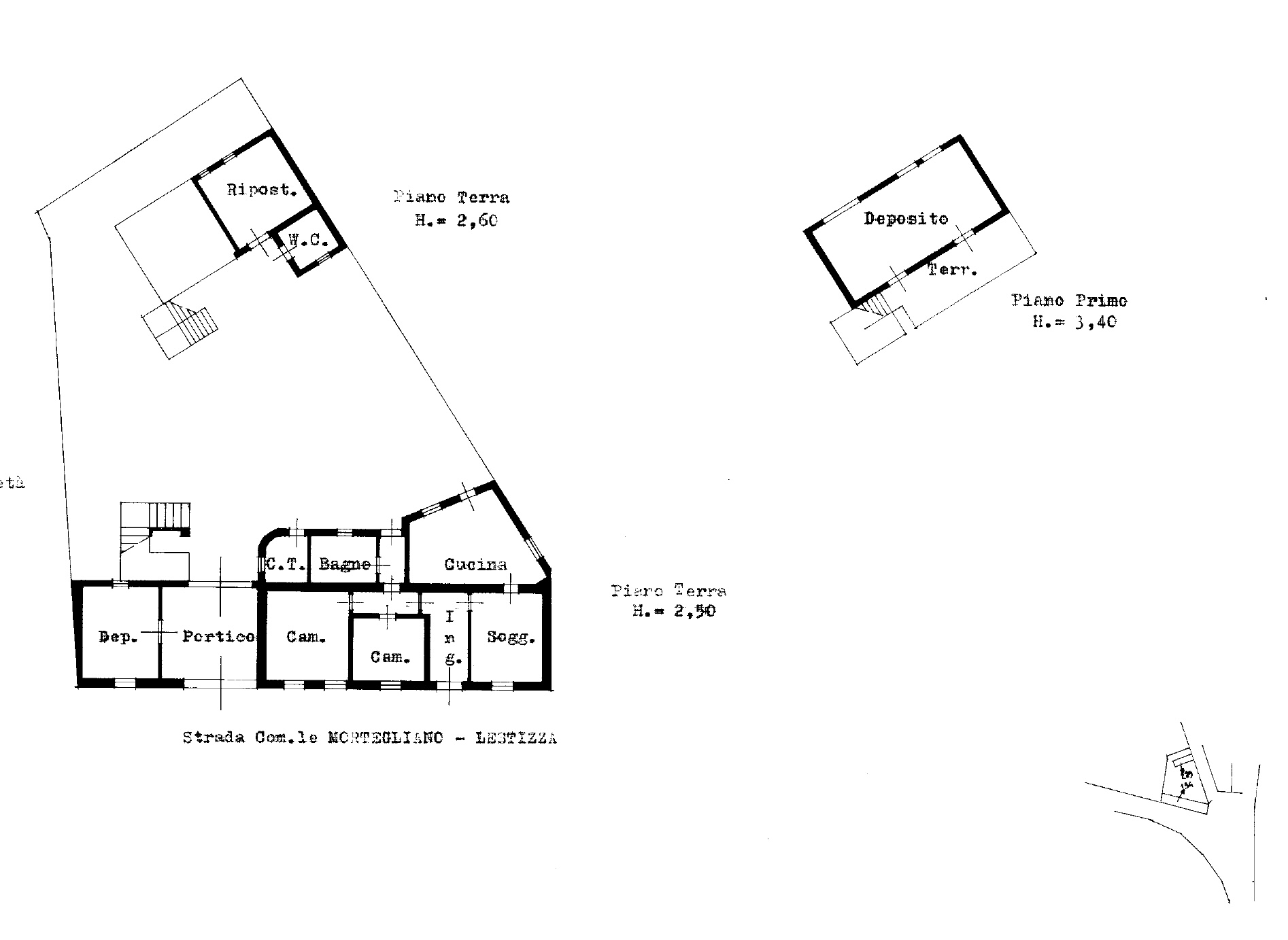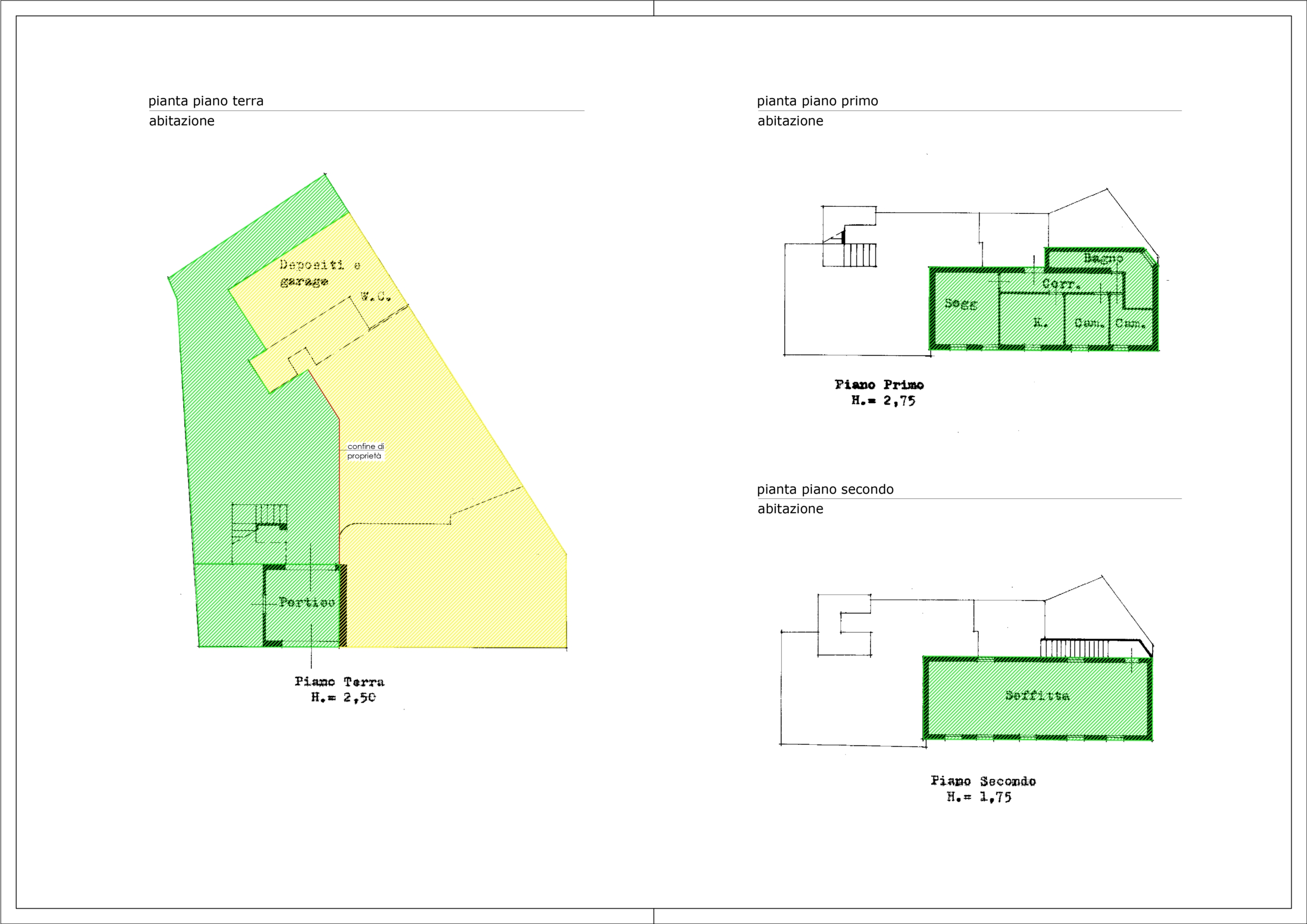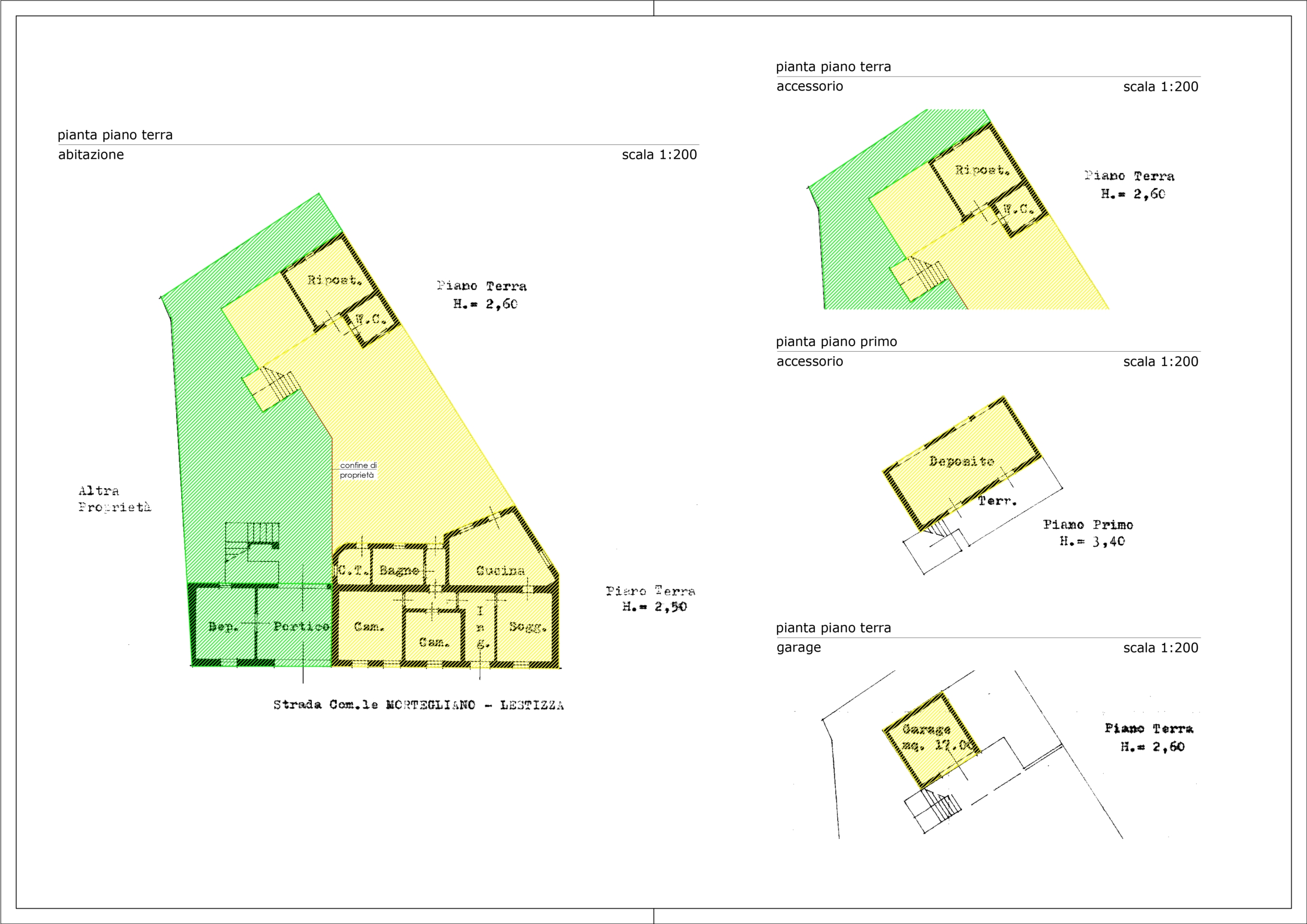 Il riscaldamento del piano inferiore è alimentato a gasolio. È già disponibile uno studio di fattibilità per la suddivisione delle due unità, che prevede l’attribuzione a ciascun appartamento della propria area scoperta e degli accessori pertinenti — possibilità quindi di acquistare l’intero stabile o una sola parte. Nella sezione planimetrie troverete una rappresentazione grafica di questa soluzione.